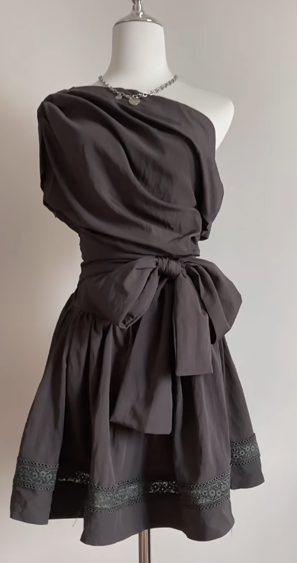 Chic A Line One Shoulder Satin Lace Short Homecoming Dress,Vacation Dress,Summer 17th Birthday Dress GG4708