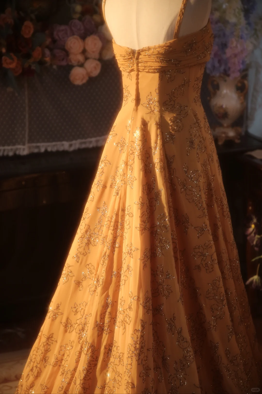 Chic A Line Spaghetti Straps Satin Beaded Long Prom Dress, Party Dress, Evening Dress GG2882