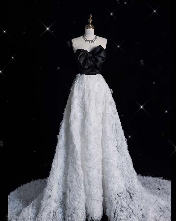 Chic A Line Strapless Bow Tulle Long Prom Dress, Evening Dress GG458