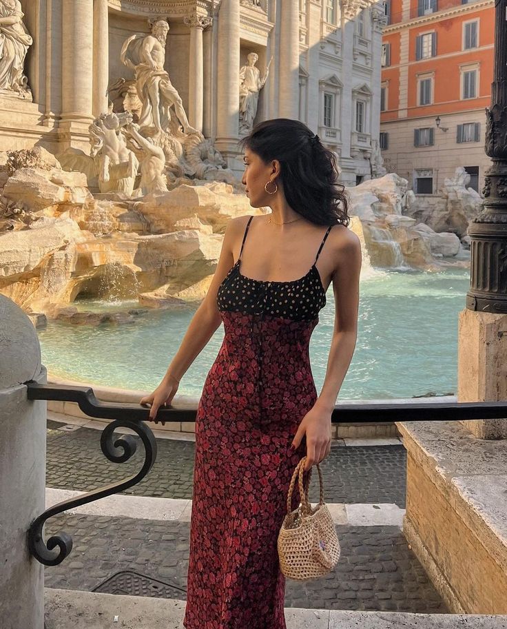 Chic Mermaid Spaghetti Straps Chiffon Printing Floral Long Prom Dress,Evening Dress GG1358