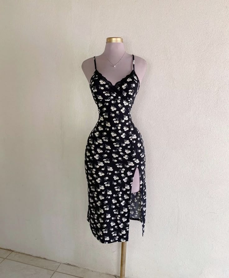 Chic Mermaid Spaghetti Straps Satin Printing Floral Slit Short Prom Dress,Homecoming Dress,Birthday Dress GG3233