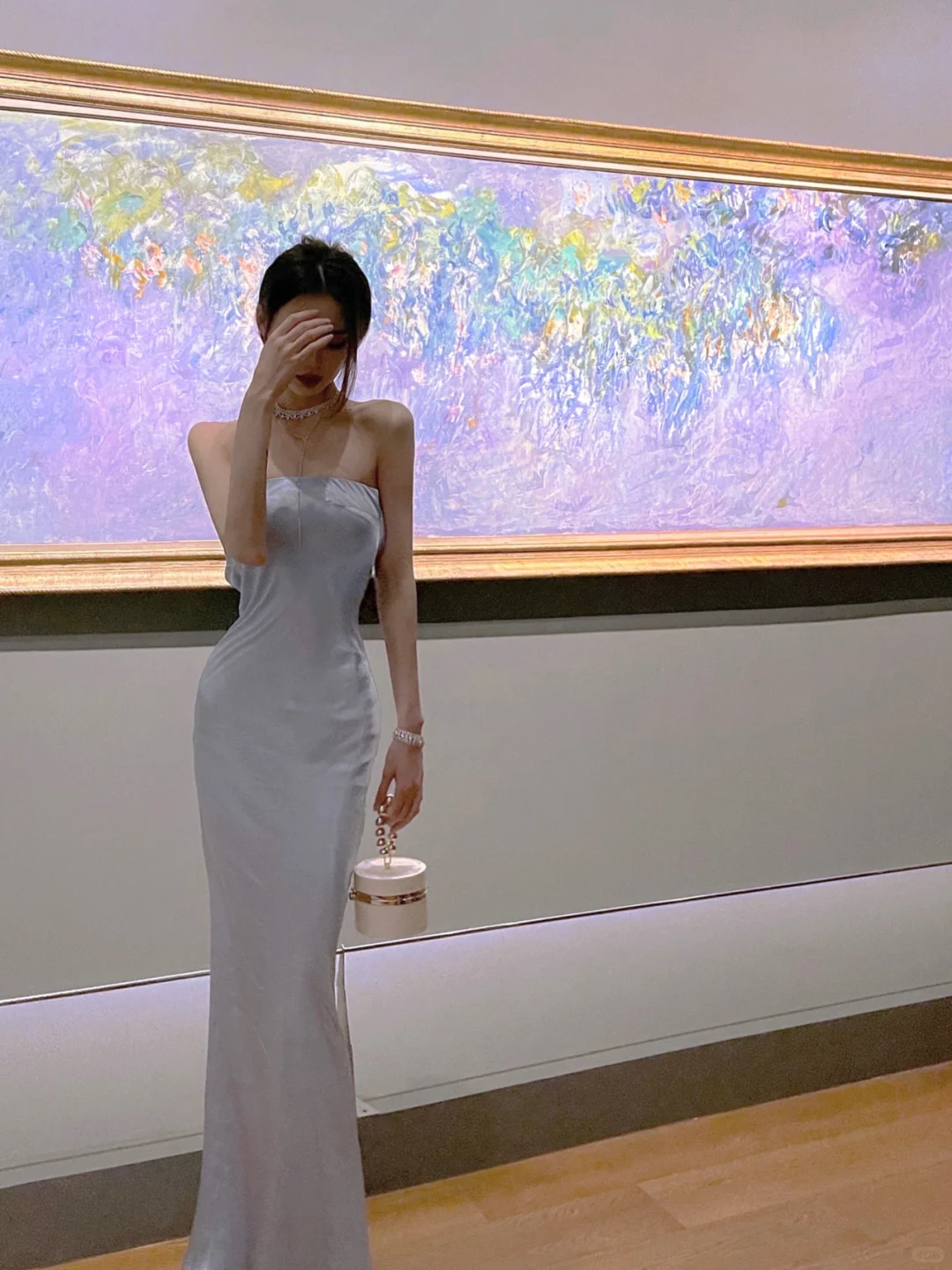 Chic Mermaid Strapless Satin Long Prom Dress,Party Dress,Evening Dress GG3659