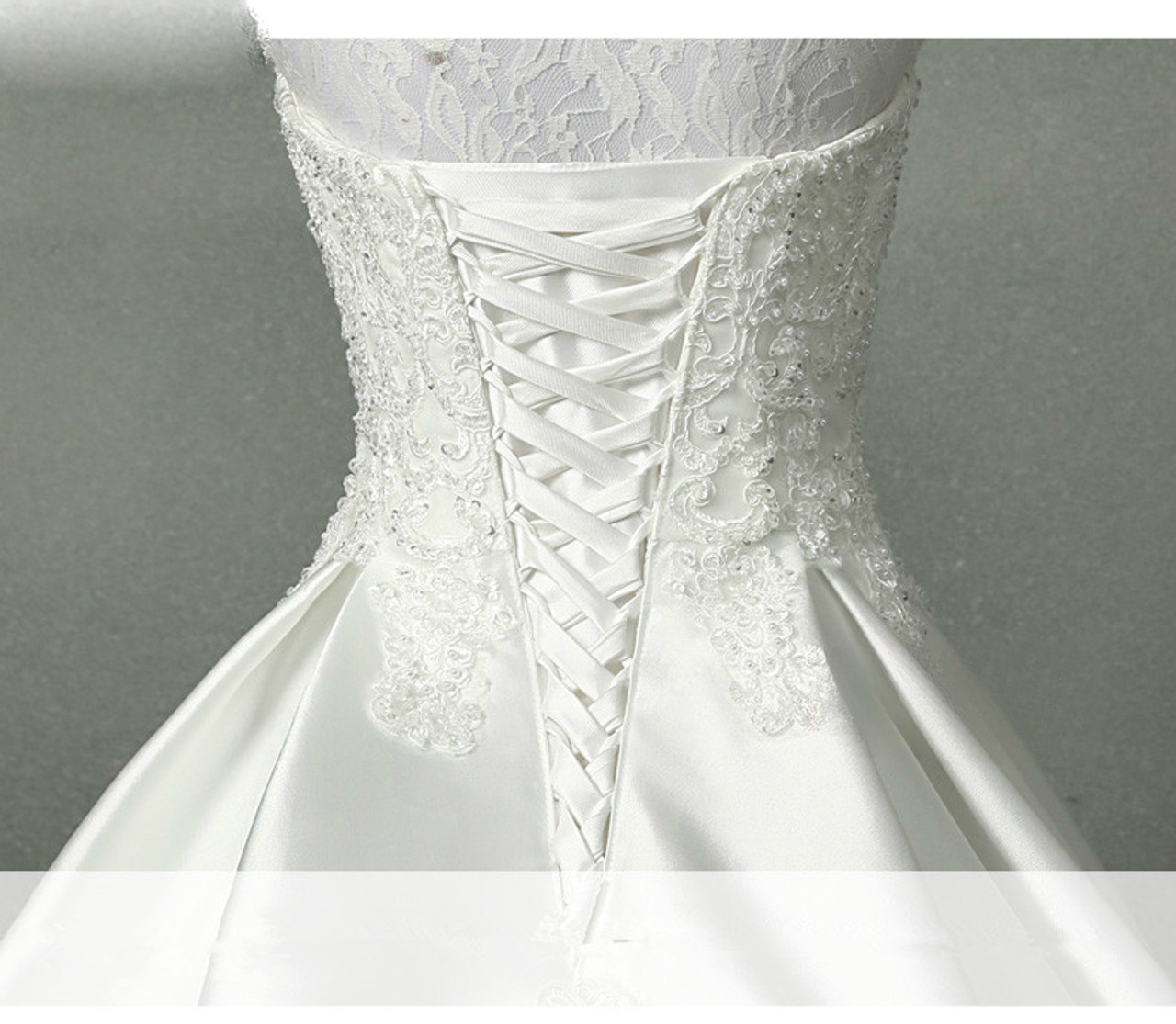 Classic Ball Gown Strapless White Satin Lace Applique Long Wedding Dress GG2974