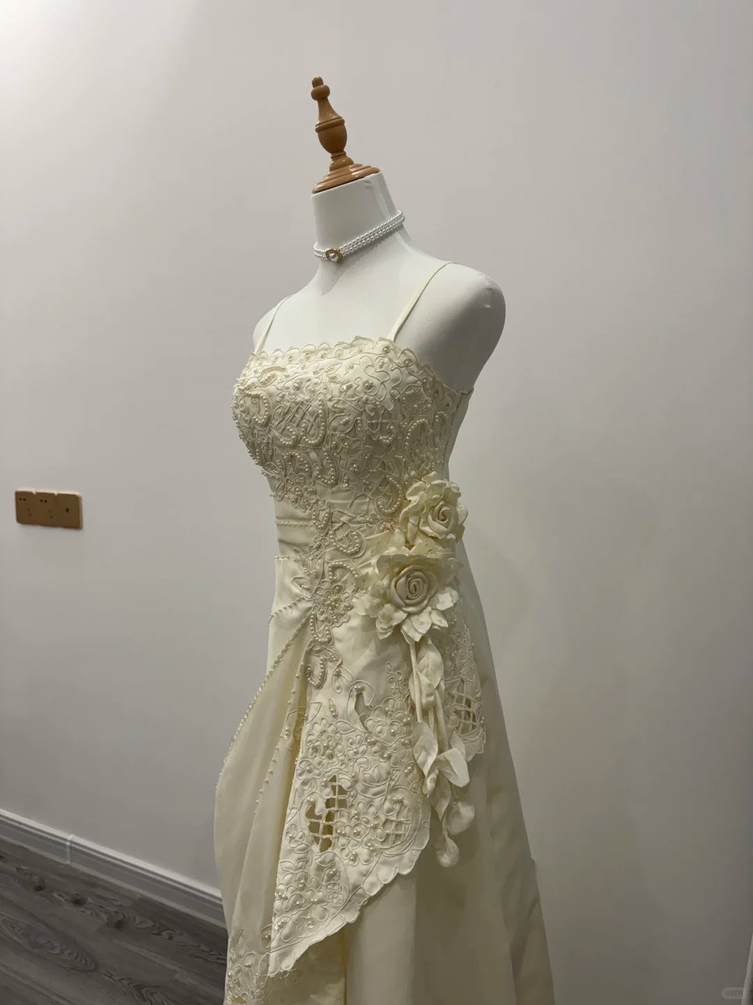 Classy A Line Spaghetti Straps Satin Applique Long Prom Dress, Party Dress, Evening Dress GG2568