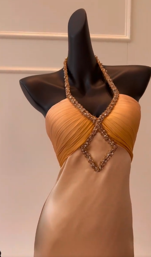 Classy Mermaid Halter Satin Beaded Long Prom Dress, Party Dress, Evening Dress GG2775