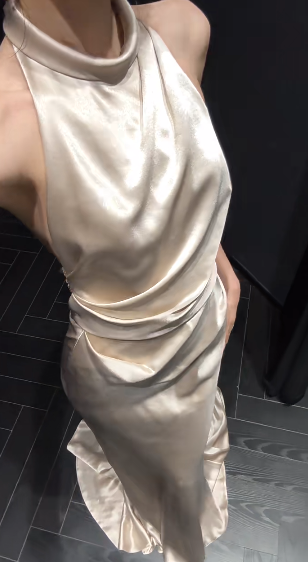 Classy Mermaid Halter Satin Pleated Long Prom Dress, Party Dress, Evening Dress GG2912