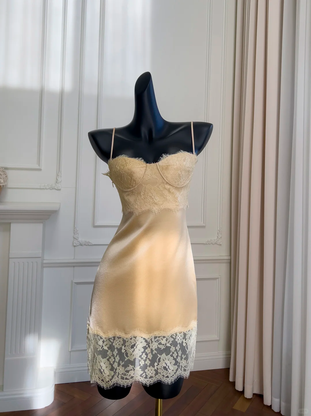 Classy Mermaid Spaghetti Straps Satin Lace Short Prom Dress,Homecoming Dress,Birthday Dress GG2768