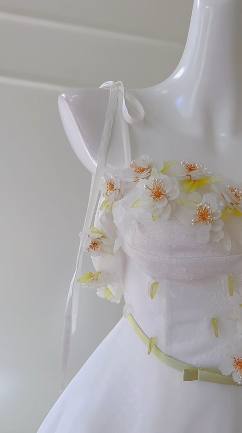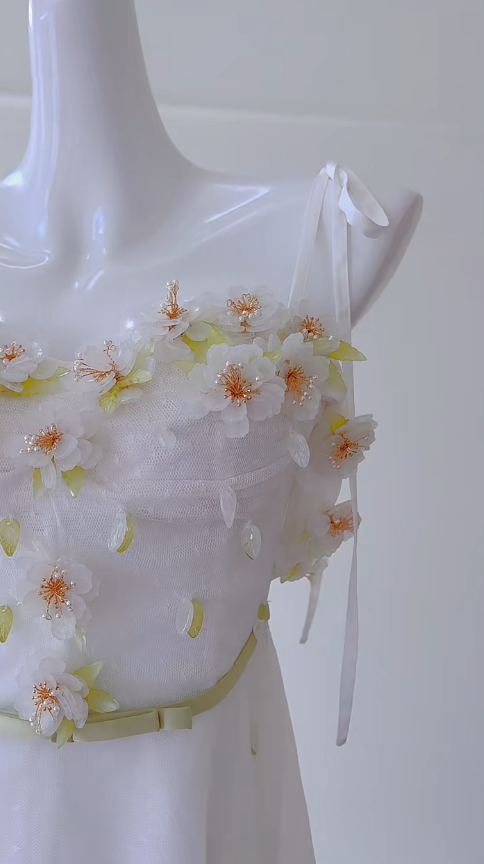 Cute A Line Spaghetti Straps White Tulle Applique Long Prom Dress, Party Dress, Evening Dress GG2898