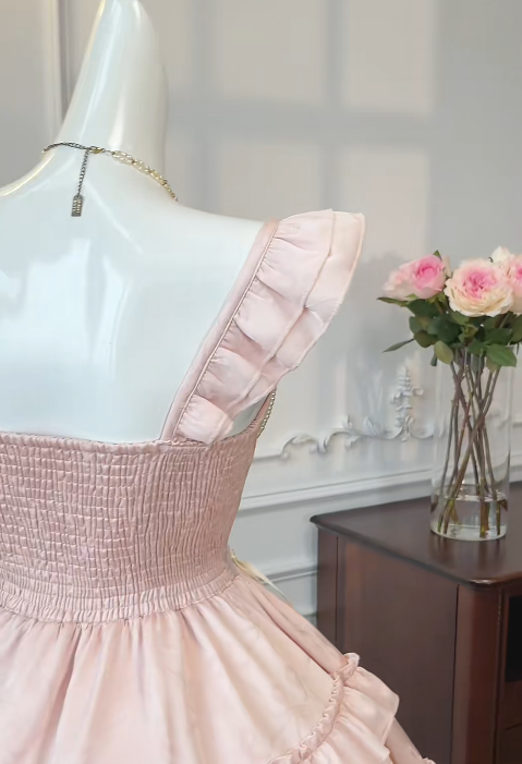 Cute Ball Gown Square Satin Tiered Short Homecoming Dress,Summer 16th Birthday Dress GG3731