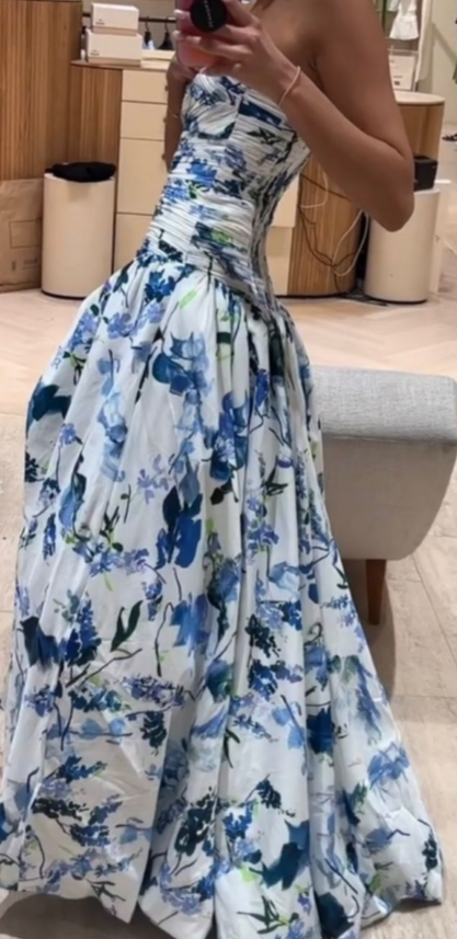 Delicate A Line Strapless Floral Chiffon Long Prom Dress,Evening Dress GG928