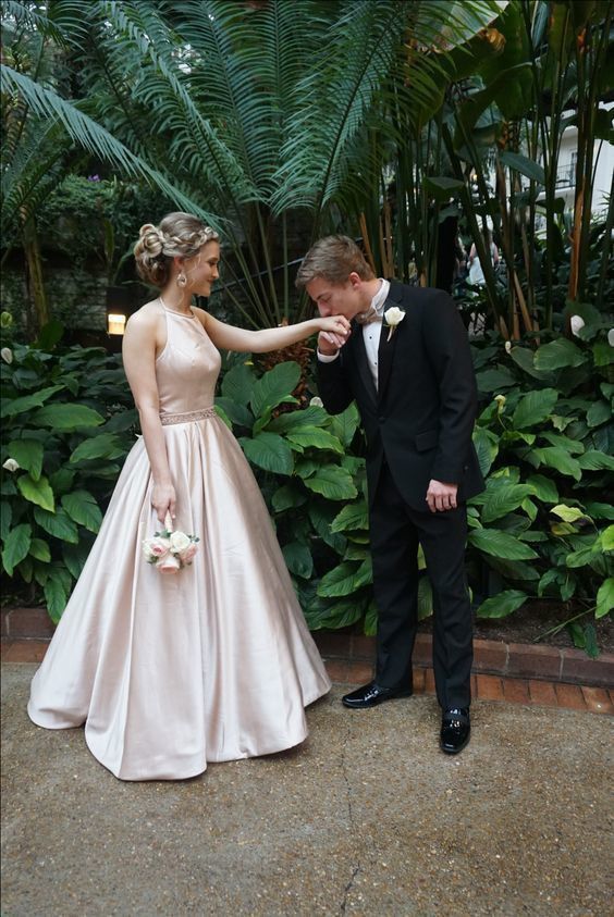 Elegant A Line Halter Light Champagne Satin Long Prom Dress,Evening Dress GG1566