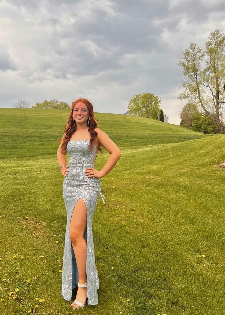 Elegant Mermaid Strapless Satin Beaded Printing Backless Slit Long Prom Dress,Evening Dress GG1006