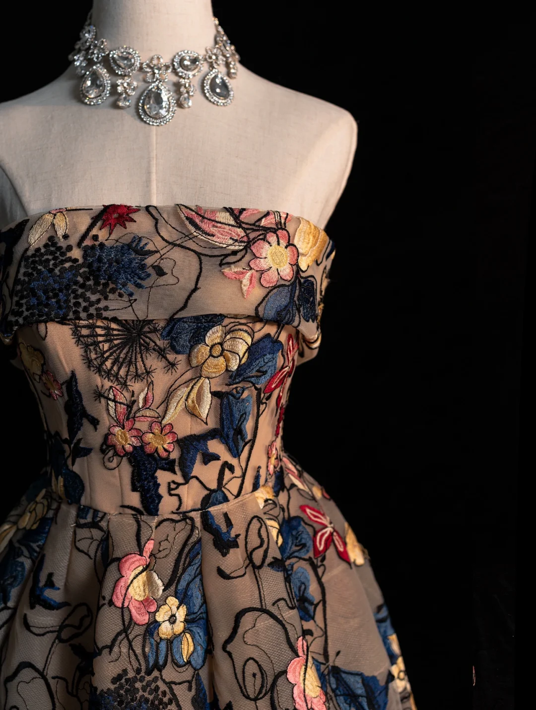 Exquisite A Line Strapless Satin Pattern Long Prom Dress, Evening Dress GG412