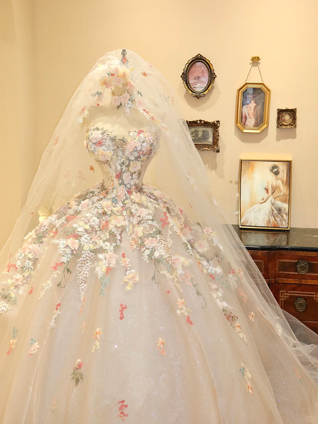 Fairy Ball Gown Strapless Tulle Applique Long Prom Dress,Party Dress,Formal Evening Dress GG4890