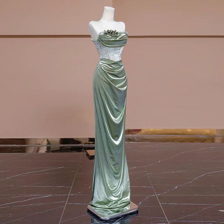 Glamorous Mermaid Strapless Velvet Pleated Long Prom Dress,Evening Dress GG1628