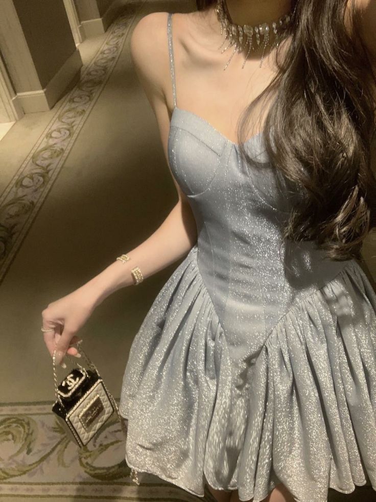 Glitter A Line Spaghetti Straps Satin Sequin Short Prom Dress,Homecoming Dress,Birthday Dress GG3364