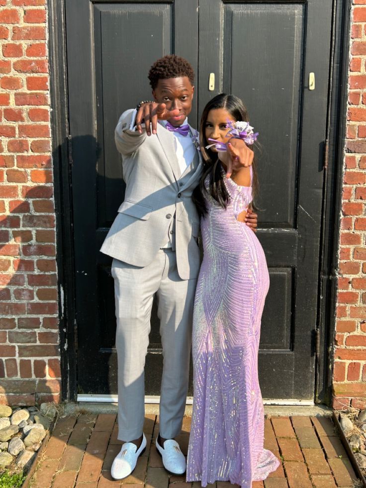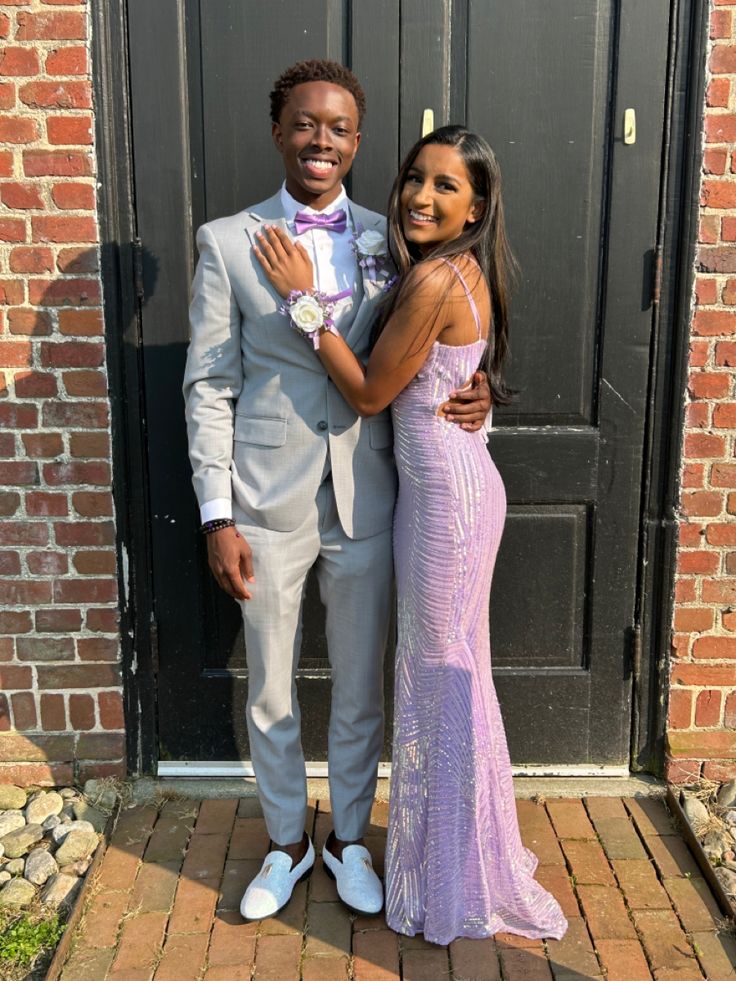 Glitter Mermaid Spaghetti Straps Lilac Satin Sequin Long Prom Dress,Evening Dress GG1676