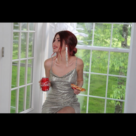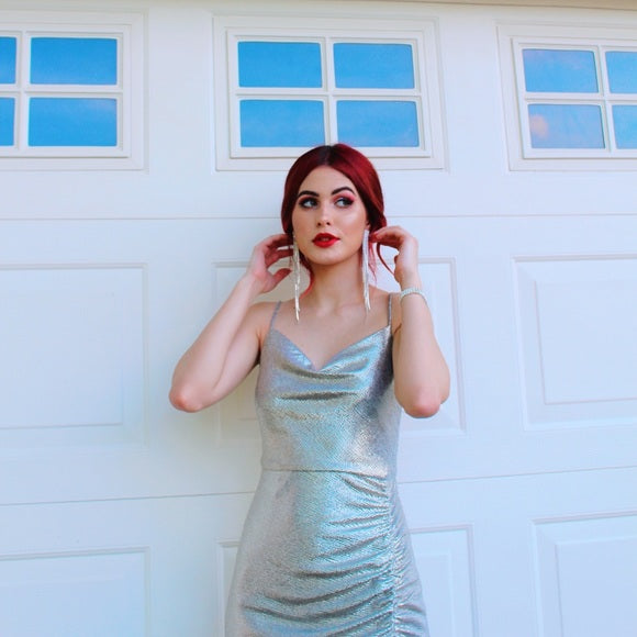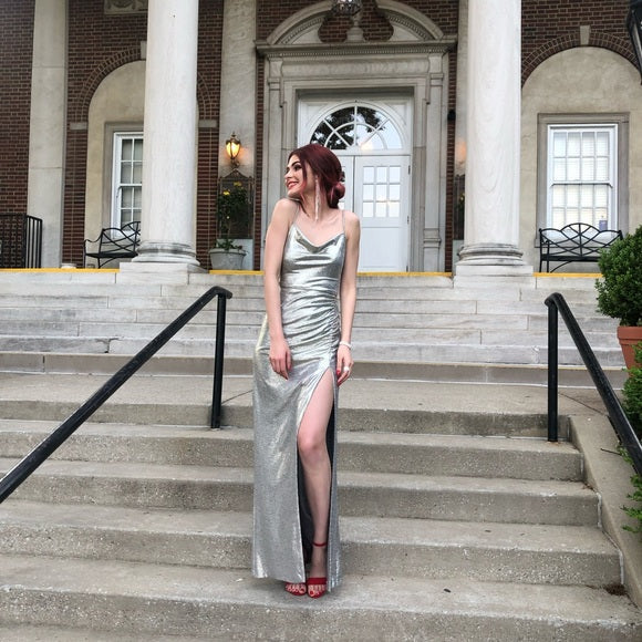 Glitter Mermaid Spaghetti Straps Silver Satin Pleated Slit Long Prom Dress,Party Dress,Evening Dress GG2172