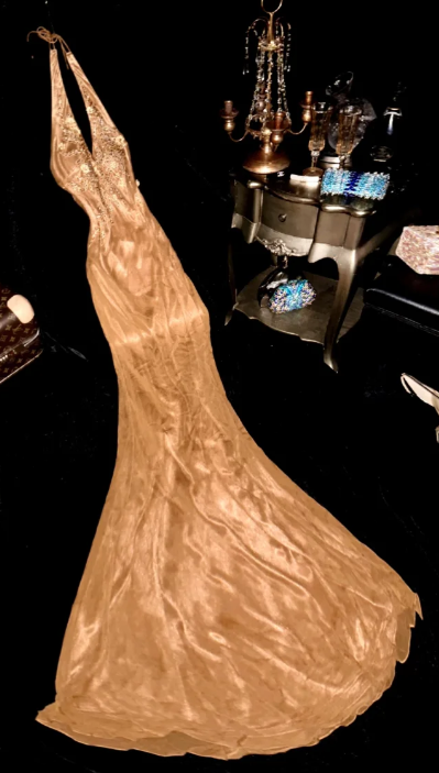 Gold Mermaid Halter Satin Beaded Applique Without Sleeves Long Prom Dress,Evening Dress GG5566