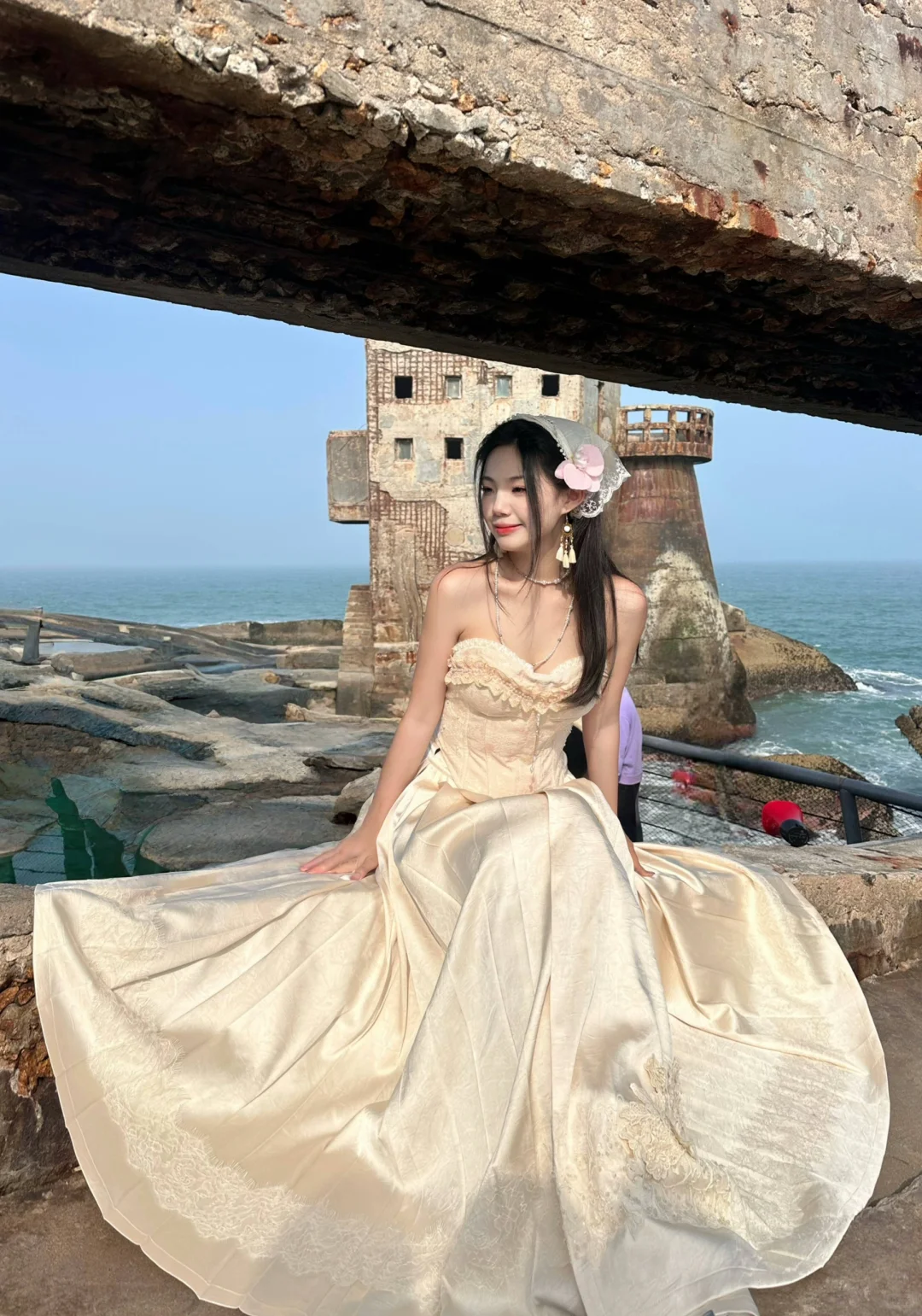 Gorgeous A Line Strapless Satin Lace Applique Long Prom Dress,Party Dress,Formal Evening Dress GG4096