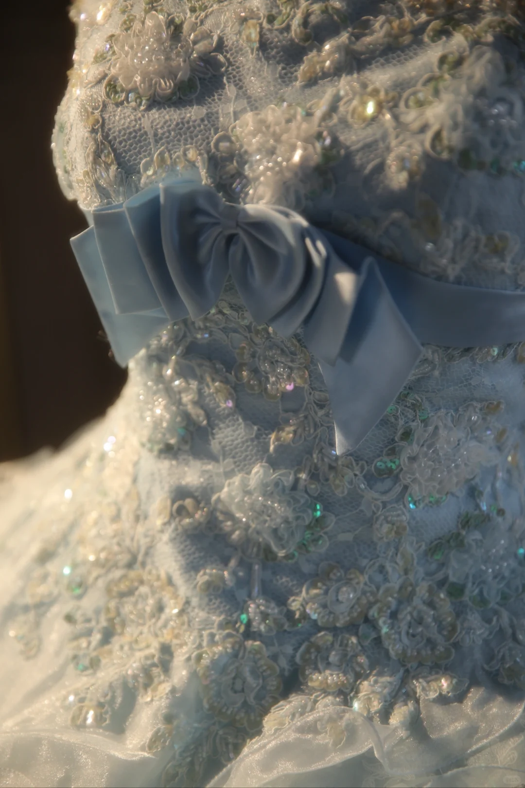 Gorgeous Ball Gown Strapless Pale Blue Chiffon Lace Applique Long Prom Dress, Party Dress, Evening Dress GG2876