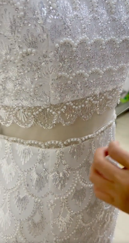 Gorgeous Mermaid Halter White Satin Tulle Sequin Pearls Long Prom Dress, Party Dress, Evening Dress GG2799
