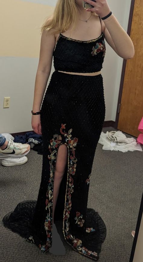 Gorgeous Mermaid Spaghetti Straps Black Tulle Sequin Beaded Applique Slit Prom Dress,Party Outfits GG2401
