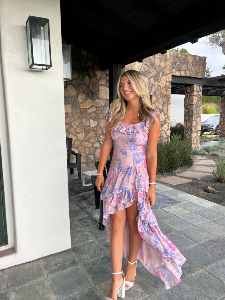 Graceful A Line Low Collar Printing Chiffon High Low Long Prom Dress,Evening Dress GG1073