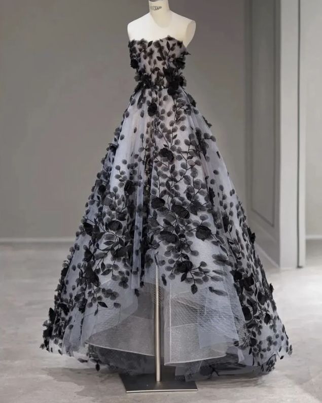 Graceful A Line Strapless Tulle Floral Long Prom Dress,Evening Dress GG753