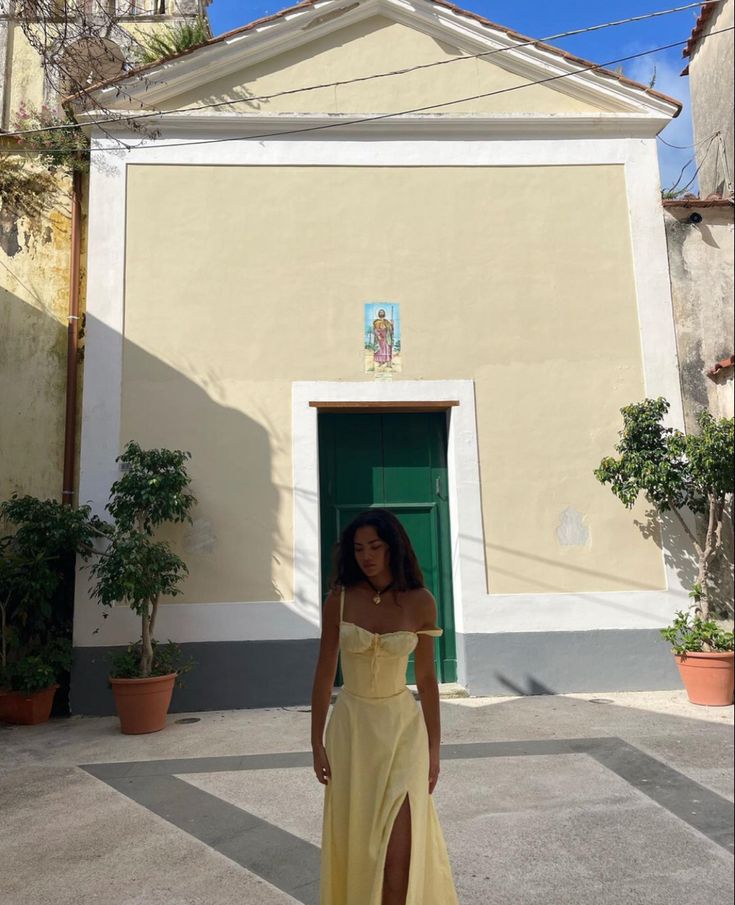 Lovely A Line Sweetheart Yellow Satin Slit Long Prom Dress, Evening Dress GG1183