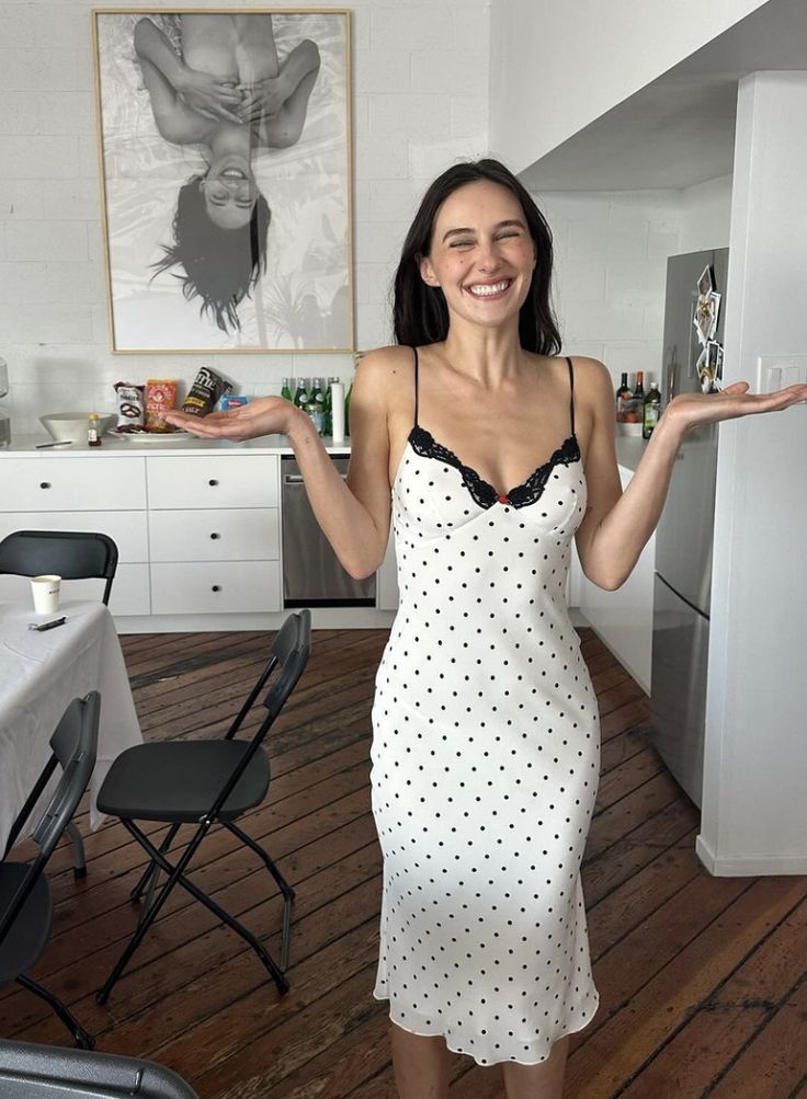 Lovely Mermaid Spaghetti Straps White Chiffon Polka Dots Tea Length Prom Dress,Evening Dress GG1365
