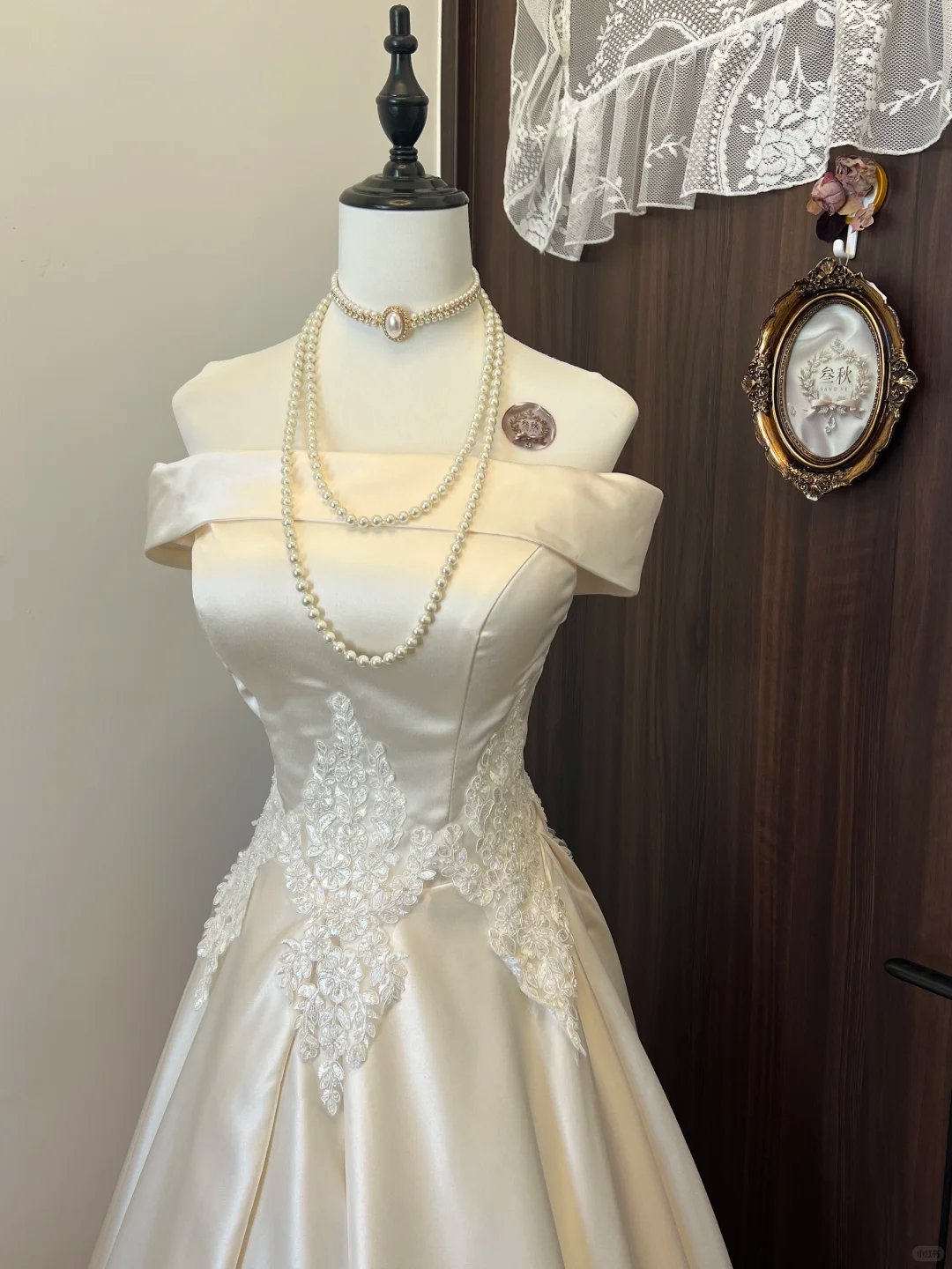 Modest A Line Off The Shoulder Satin Lace Long Prom Dress,Evening Dress GG5126