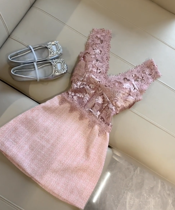 Modest A Line V Neck Satin Lace Short Homecoming Dress,Summer 21th Birthday Dress GG4436