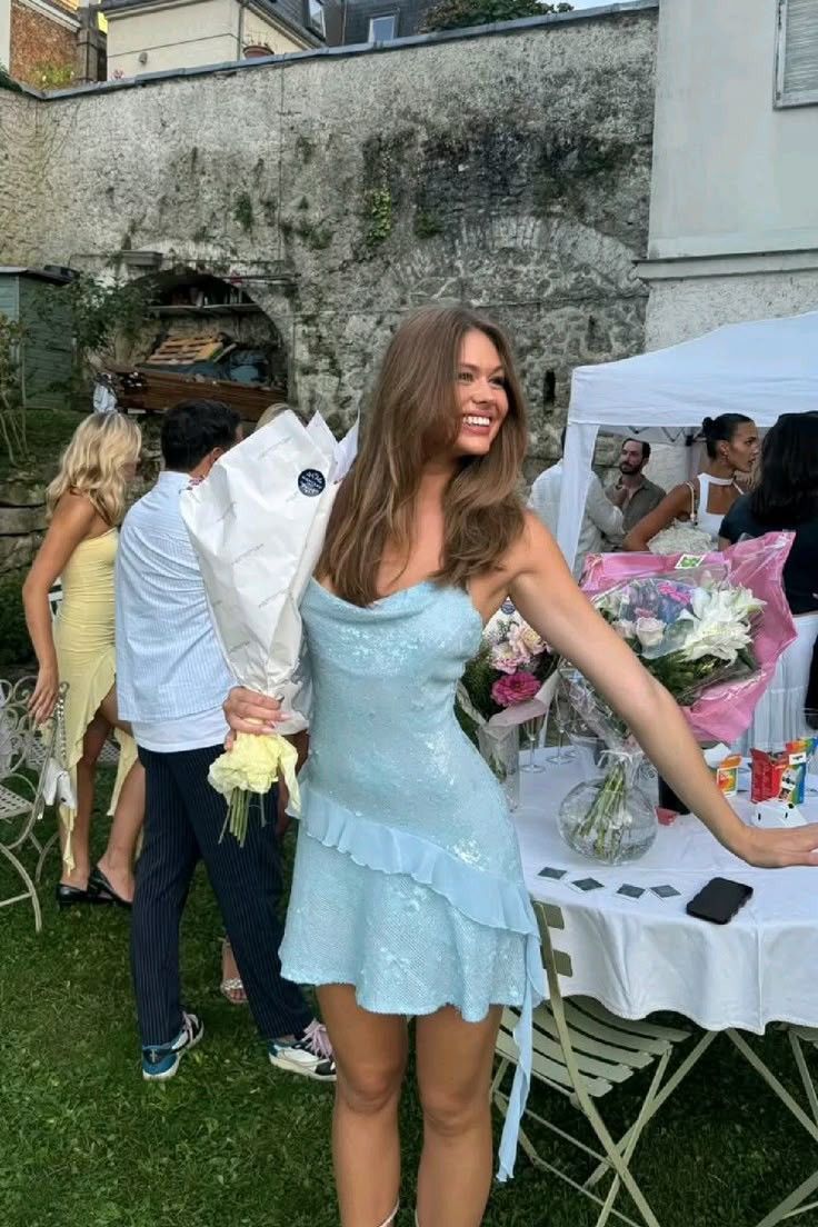 Pale Blue A Line Spaghetti Straps Sequin Chiffon Short Prom Dress,Homecoming Dress,20th Birthday Dress GG3642