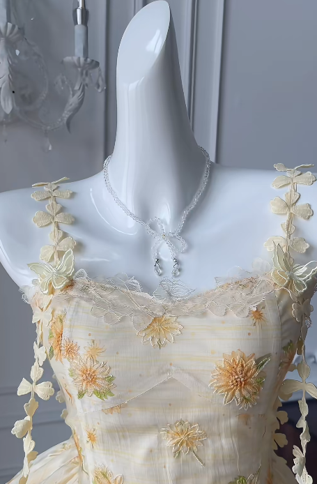 Pastel Yellow A Line Spaghetti Straps Satin Chiffon Applique Short Homecoming Dress,Summer 16th Birthday Dress GG3729