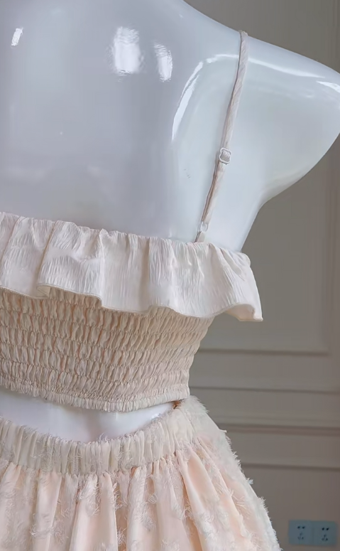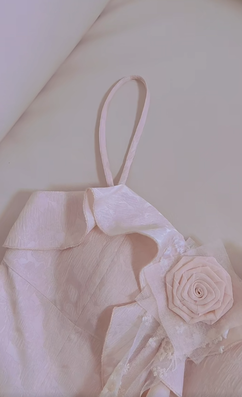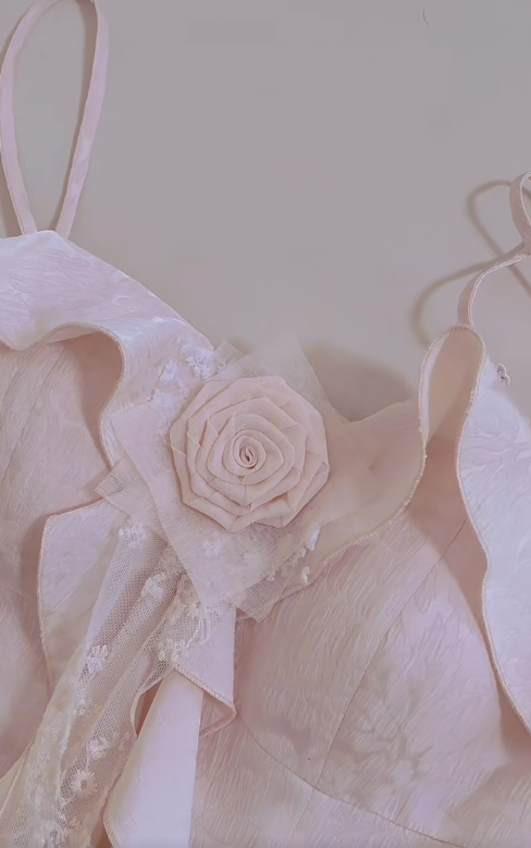 Pretty A Line Spaghetti Straps Pink Satin Lace Ruffles Long Prom Dress, Party Dress, Evening Dress GG2807