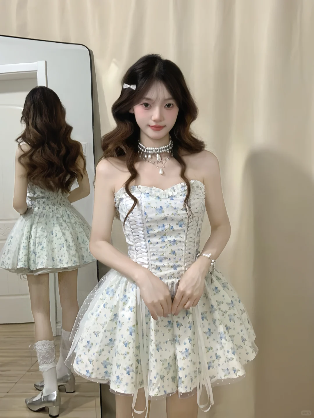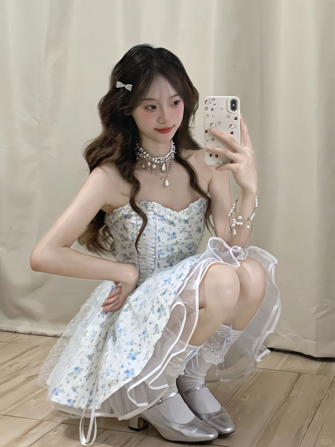 Pretty A Line Strapless Satin Printed Tulle Short Prom Dress,Homecoming Dress,16th Birthday Dress GG3631