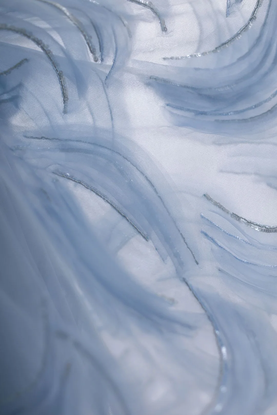 Princess Ball Gown Strapless Sky Blue Tulle Sequin Long Wedding Dress GG2992