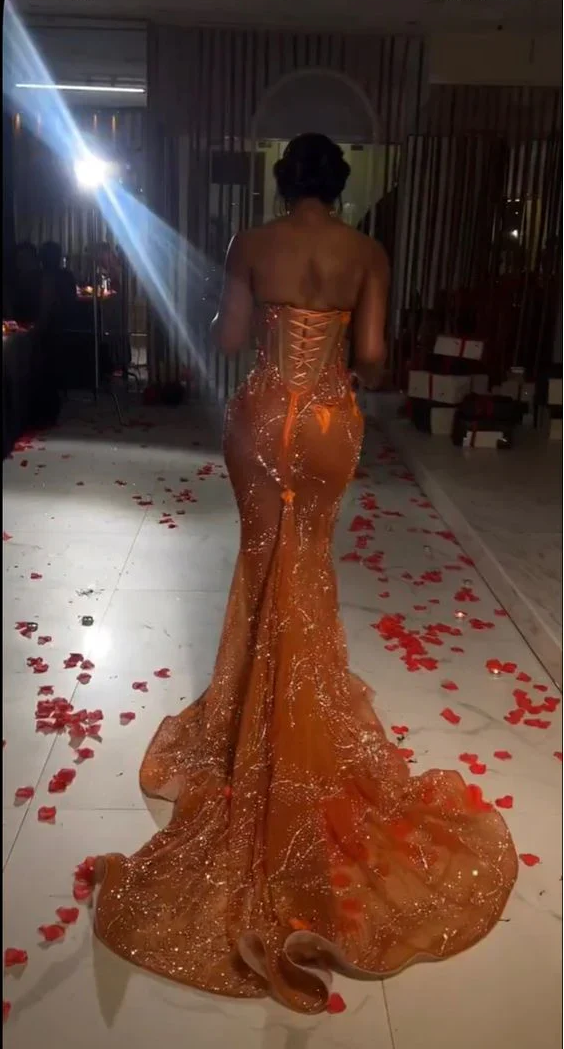 Sexy Mermaid Strapless Orange Sequin Beaded Applique Long Prom Dress,Evening Dress GG1847