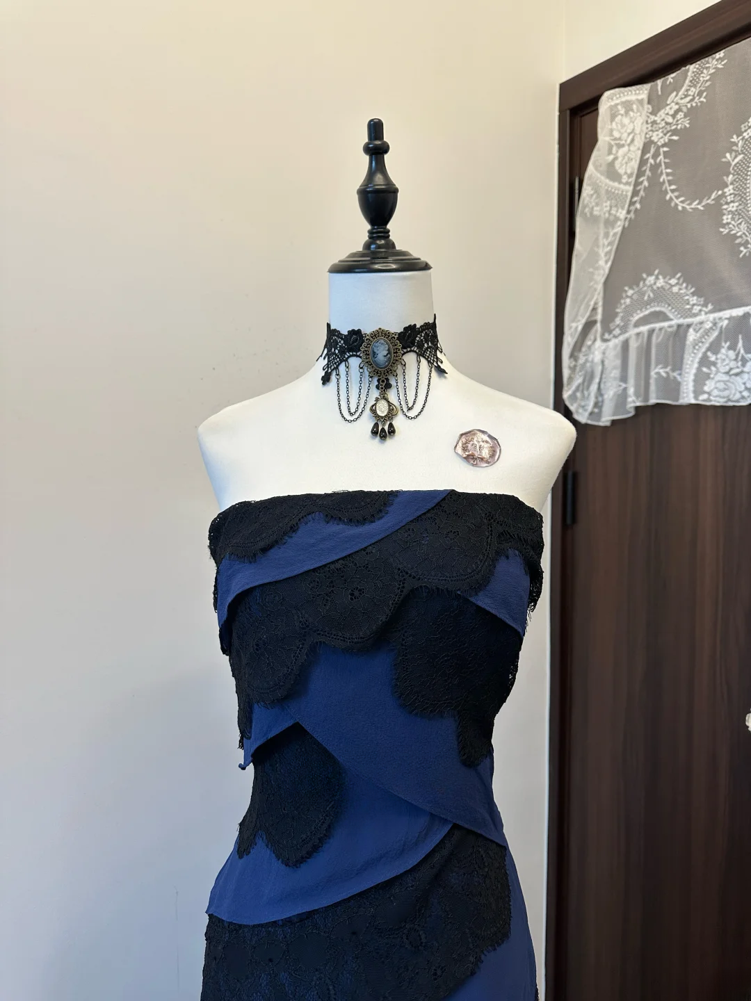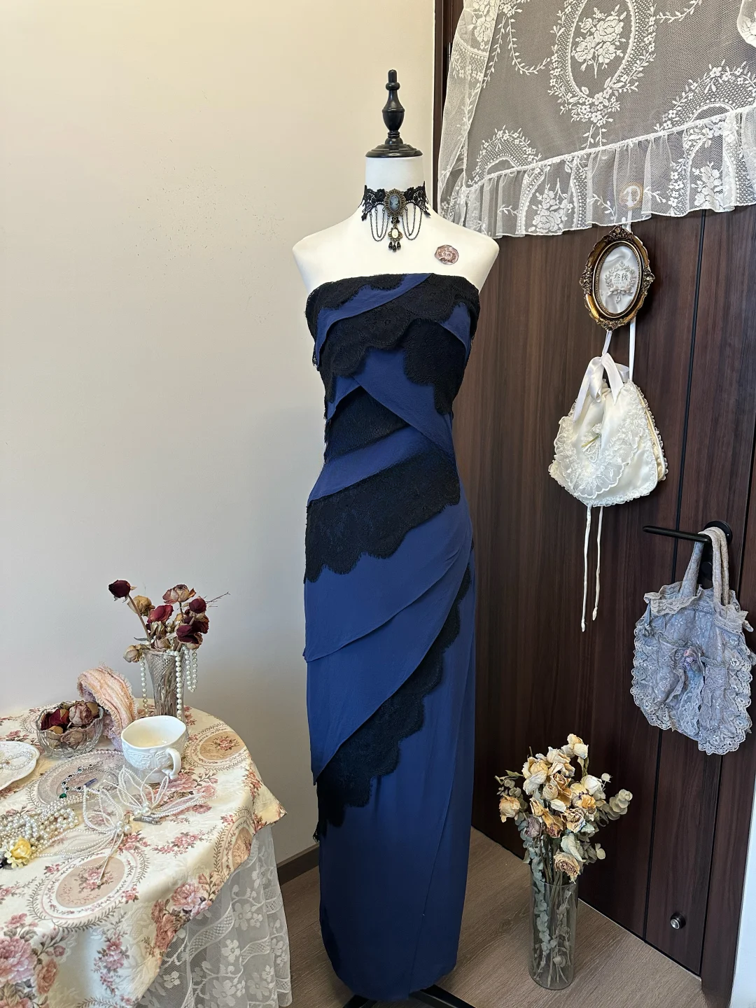 Sexy Slim Mermaid Strapless Satin Lace Long Prom Dress,Evening Dress GG5157