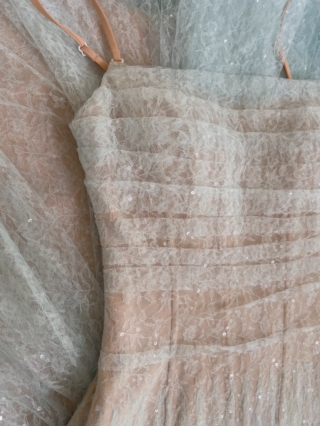 Shiny A Line Sapghetti Straps Satin Tulle Sequin Long Prom Dress,Party Dress,Evening Dress GG3607