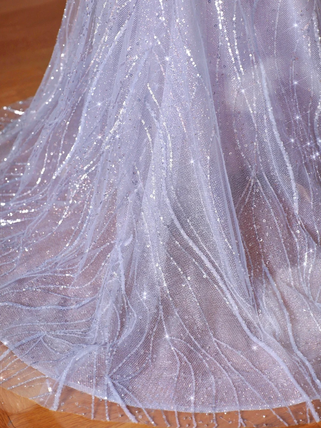 Shiny Mermaid Spaghetti Straps Lilac Tulle Sequin Back With Bow Long Prom Dress,Party Dress,Evening Dress GG3522