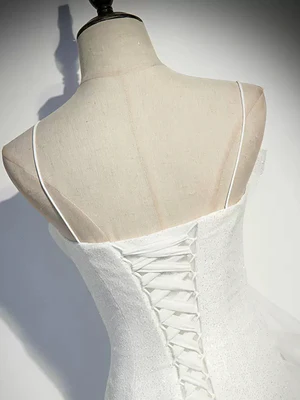 Shiny Sequins White Mermaid Spaghetti strap Tulle Long Prom Dresses, White Mermaid Long Formal Evening Dresses GG030
