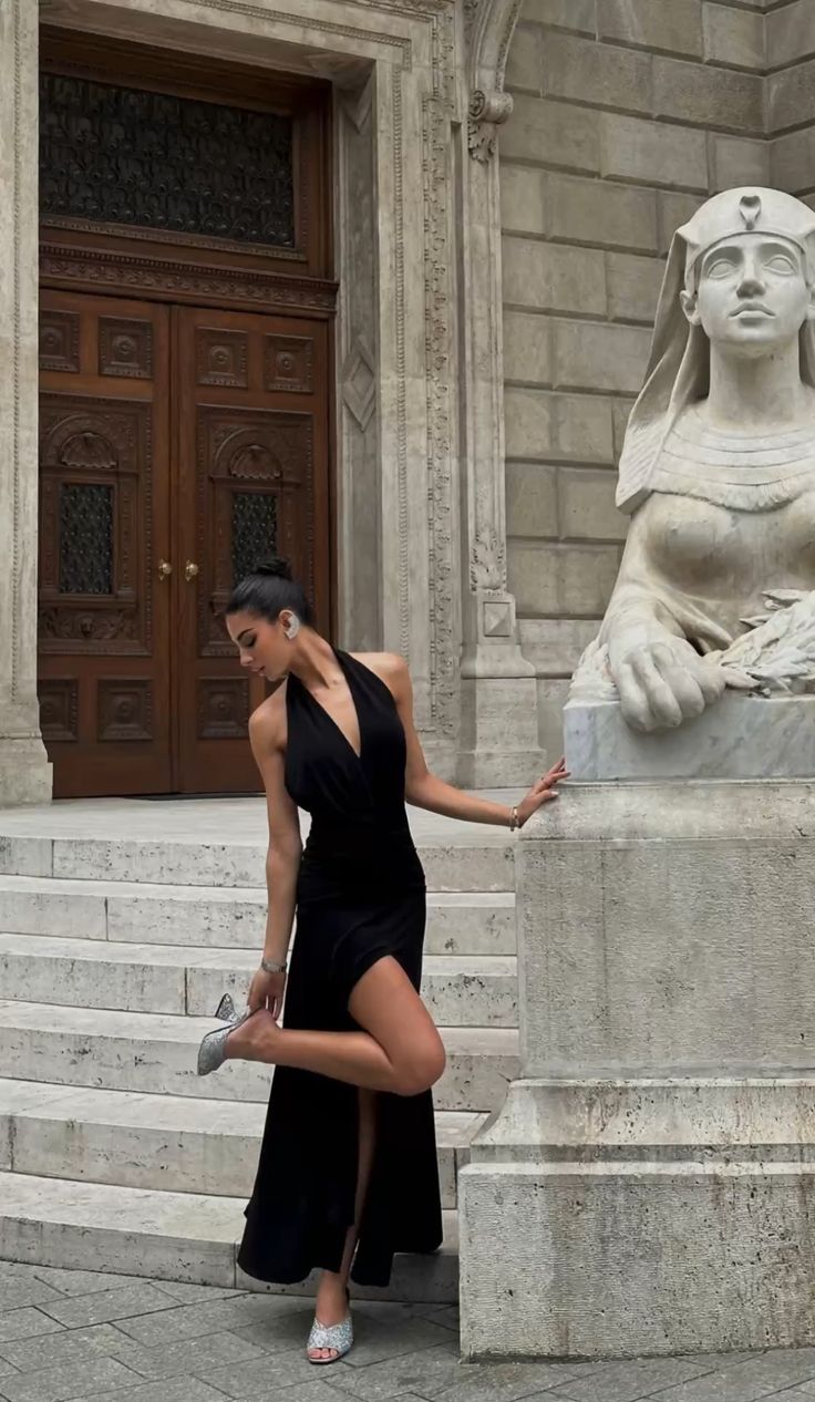 Simple A Line Halter Black Satin Slit Long Prom Dress,Evening Dress GG1461