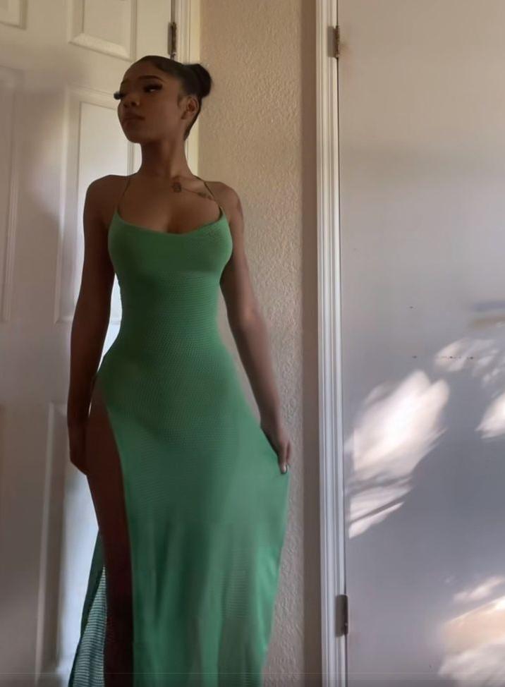 Simple Mermaid Halter Straps Chiffon Slit Long Prom Dress,Evening Dress GG1397