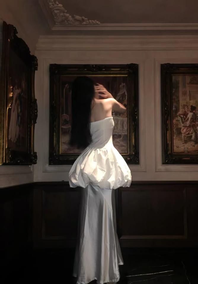 Special Mermaid Strapless Satin Long Prom Dress,Evening Dress GG5116