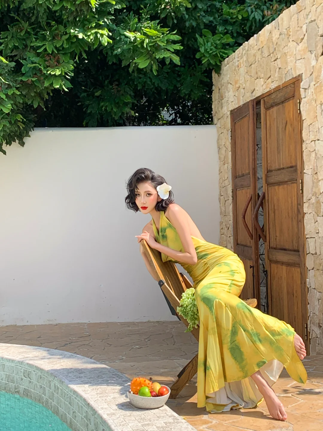 Stunning Mermaid Halter Chiffon Printed Long Prom Dress,Party Dress,Evening Dress GG3548