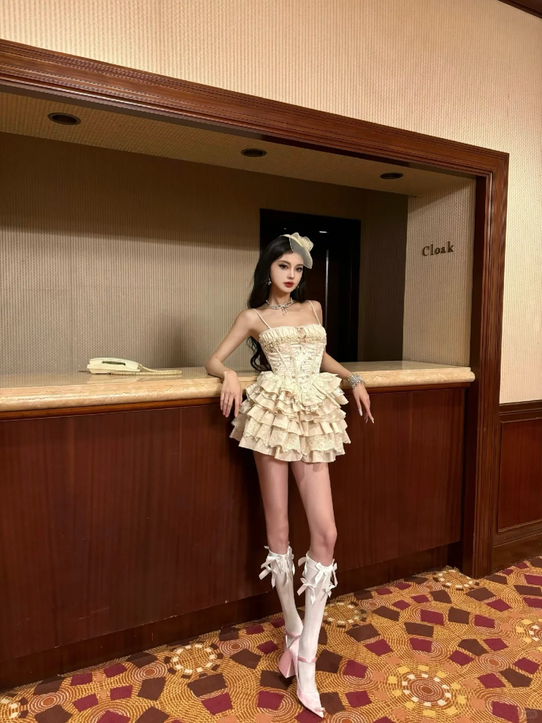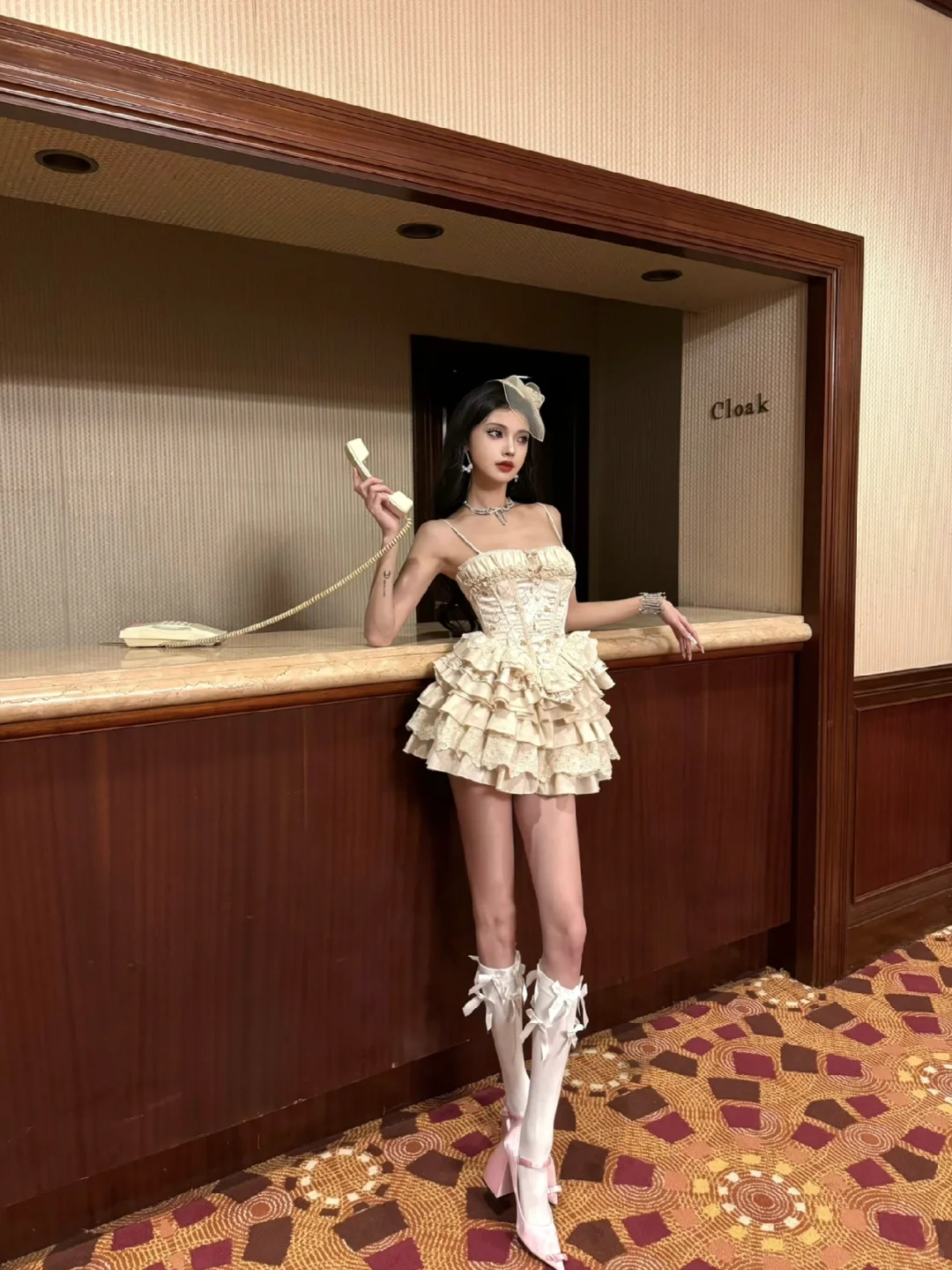 Sweet 16th Ball Gown Spaghetti Straps Satin Tiered Short Homecoming Dress,Summer Birthday Dress GG3792