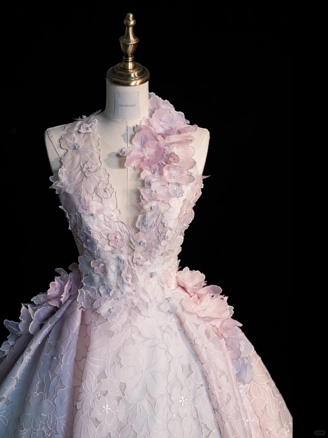 Sweet Ball Gown Halter Satin Applique Long Prom Dress, Party Dress, Evening Dress GG2887