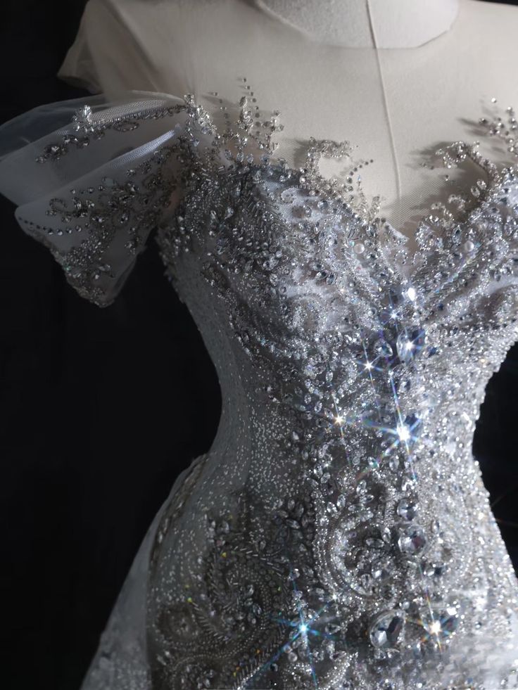 Timeless Mermaid Off The Shoulder Tulle Sequin Beaded Long Wedding Dress GG2979